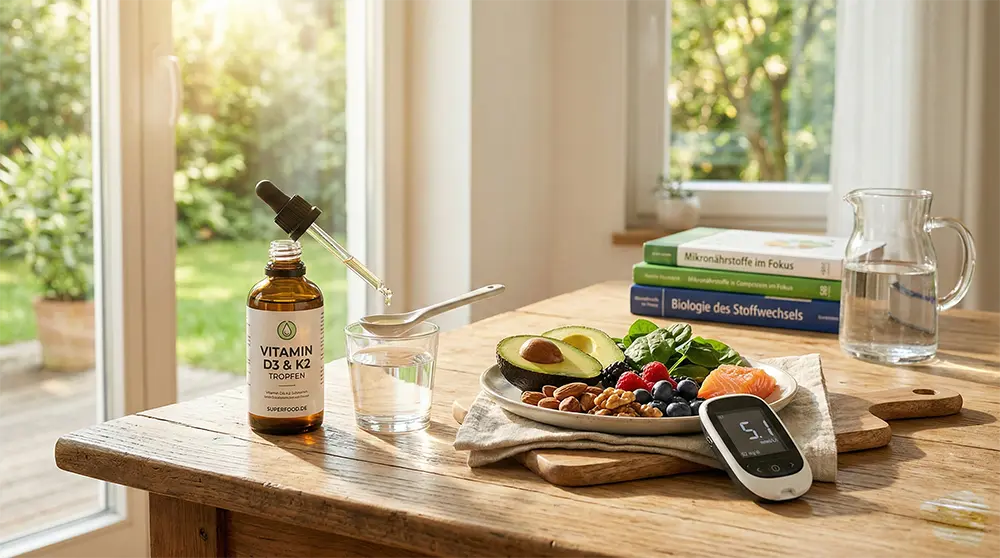 - Fehlende Kofaktoren: Wer Produkte für Vitamin D bei Diabetes online bestellt, vergisst oft das Wichtigste: Vitamin D arbeitet niemals isoliert. Für die Aktivierung benötigt der Körper zwingend Magnesium und Vitamin K2.